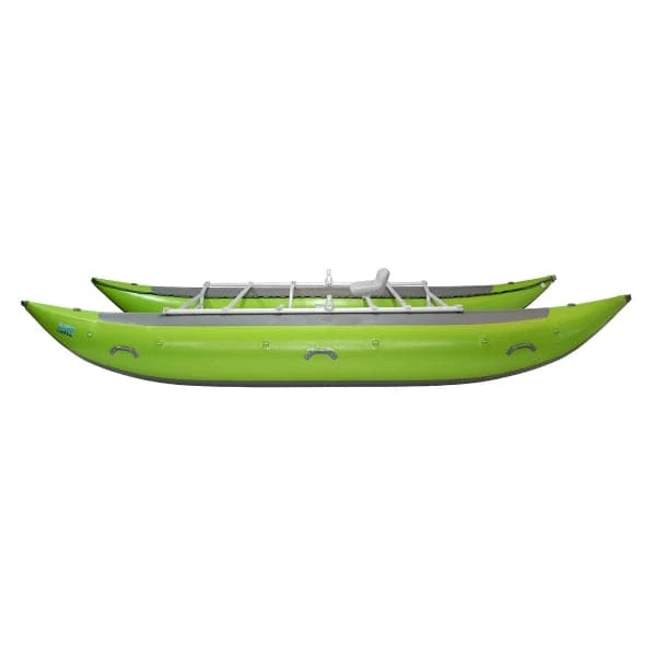 The AIRE Leopard 18′ Cataraft is one of the largest cats AIRE makes. With 26.5″ diameter tubes, this rig can haul more than 2000 pounds of people and gear. Redesigned with more bow and stern kick for better speed, tracking and maneuverability, this versatile craft can also handle the technical stuff. A frame chafe has now been added on top for improved durability when loading and unloading that kitchen box. With it’s size and capacity, the Leopard is an excellent choice for fly-in trips and long expeditions everywhere.