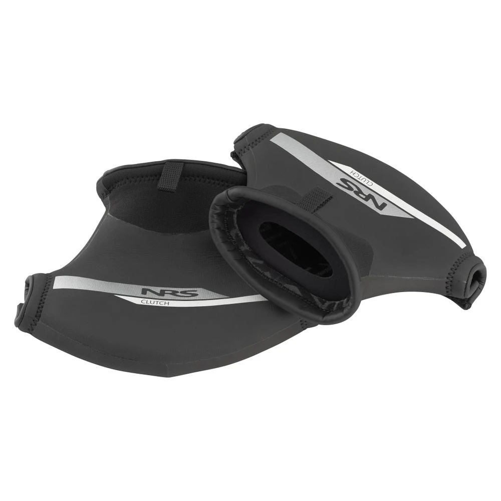 NRS Clutch Pogies give you the ultimate thermal protection for paddling in frigid conditions while allowing a bare-hand grip for maximum paddle control. 3 mm raw neoprene with Titanium laminate adhesive sheds water, eliminating evaporative cooling and maximizing insulation. A nylon coating at the wrist enhances durability while the graphene lining is lighter when wet, dries quick and feels soft against the skin.