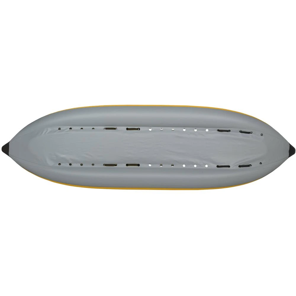 Featuring a drop-stitch floor (similar to a paddleboard) for a rock solid platform that is quick and responsive while providing a solid platform for gear storage. A high rocker design makes it maneuverable and responsive while climbing high over big waves and punching through large river hydraulics.