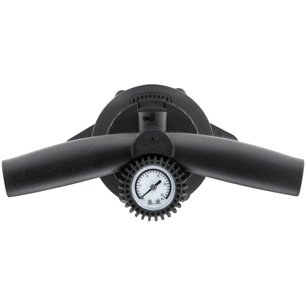 The NRS Super Pump High Pressure SUP Pump is the perfect tool to inflate your stand up paddle board or other high pressure or drop-stitch inflatable. The Super Pump can switch between high-volume and high-pressure single or double action that will inflate up to 20 psi, and has an integrated pressure gauge to take the guess work out of inflating your craft. Each single-action stroke puts out 0.48 gallons (1.8 liters) of air. In double-action mode you get 0.96 gallons (3.6 liters) with every full stroke. The Super Pump includes a durable aluminum shaft, a 4-foot hose and interchangeable valve adapters that will work with just about any SUP or IK valve on the market. 2.75″ Dia. x 25″ H