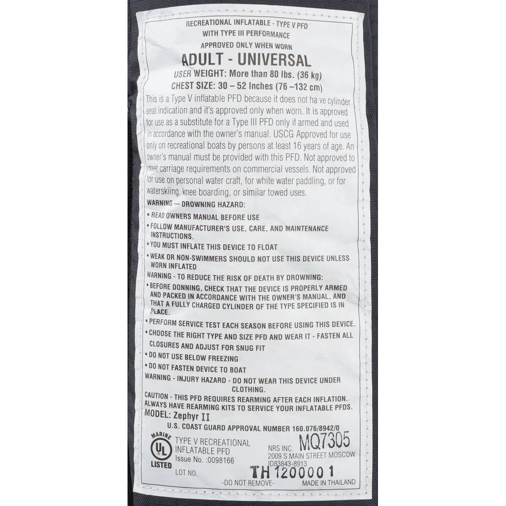 Note: This PFD is certified by the US Coast Guard as a Type V PFD. However, it meets Coast Guard requirements for Type III PFDs when it is worn. In other words, you have to have the pouch secured around your waist for it to qualify as a required flotation device. This PFD will not qualify and is not intended for river use.