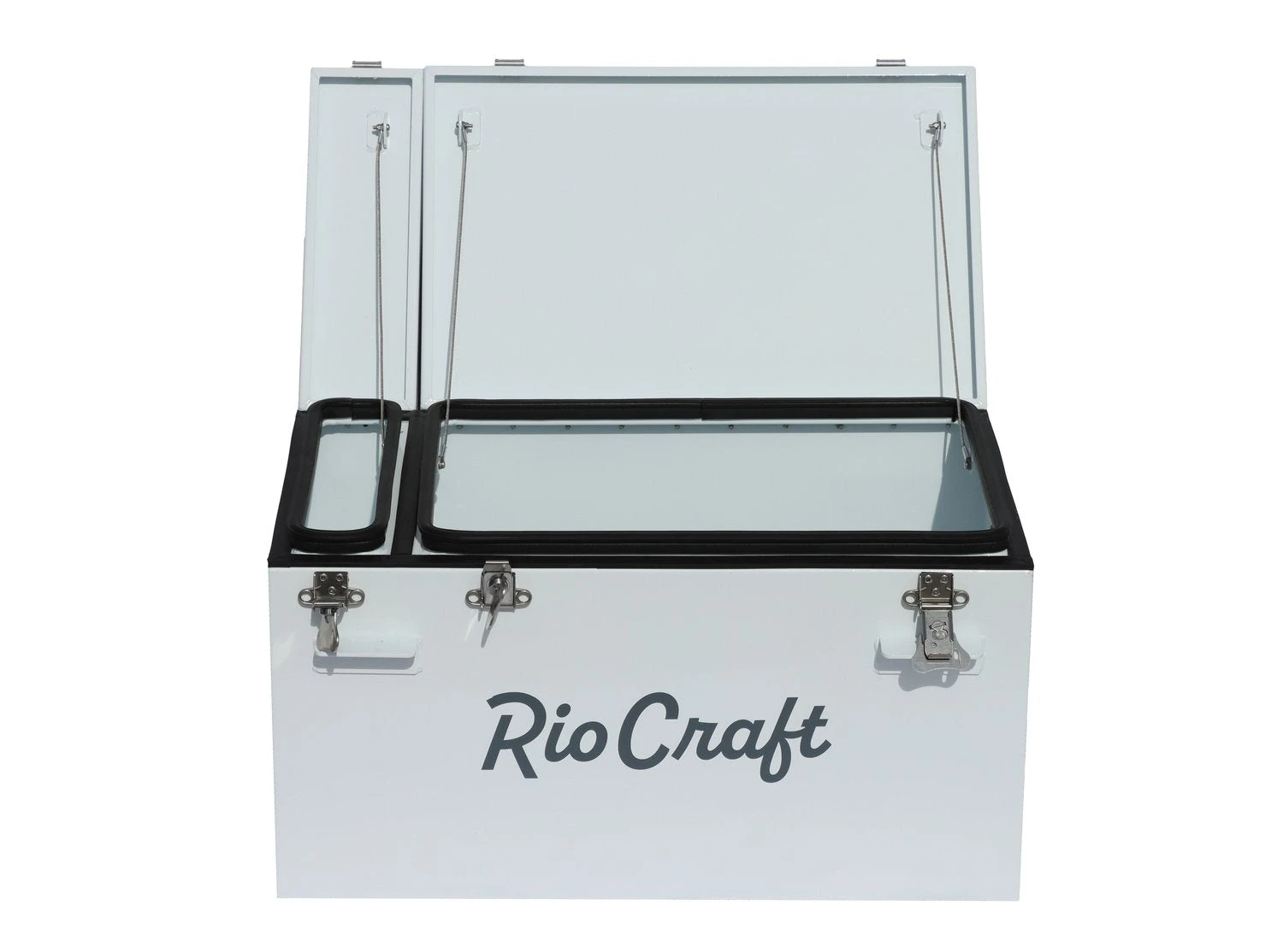 Available in a variety of sizes, Rio Craft Powder-Coated Aluminum Dry Boxes fit seamlessly into your frame, sitting elevated on the bars to provide a protective buffer from the floor without the need for straps or rigging. Featuring burly locking latches and a rubber-sealed lining, they guarantee maximum security even in high waters. With the exclusive light gray powder-coated finish, the black streaks left by other aluminum boxes are a thing of the past! Choose from single or dual lid designs. You can also add a Rio Craft DryBox Shim Kit (sold separately) to any model to shim it out for putting a captain’s chair or flip seat over top.