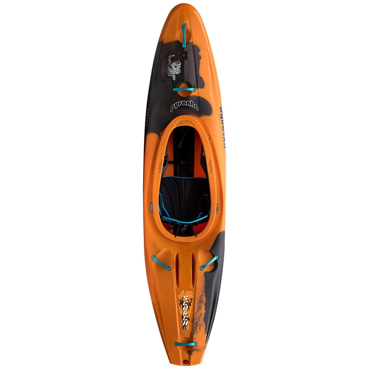 The Pyranha Scorch Whitewater Kayak is the boundary-smashing culmination of decades of evolution, combining and refining features from past Pyranha designs. The hybrid rocker profile is efficient on the move, planing over even the burliest of features, while the stern kick-rocker allows the back edge to clear the lip of drops quickly and ensures you skip out over whatever lies in wait below. A fine balance of length and edge carries speed and maintains precise lines, even in boils, unpredictable water; and the generous but carefully tailored volume keeps you on top of the water and gives you the capacity to carry all your essentials without impeding your paddle strokes.