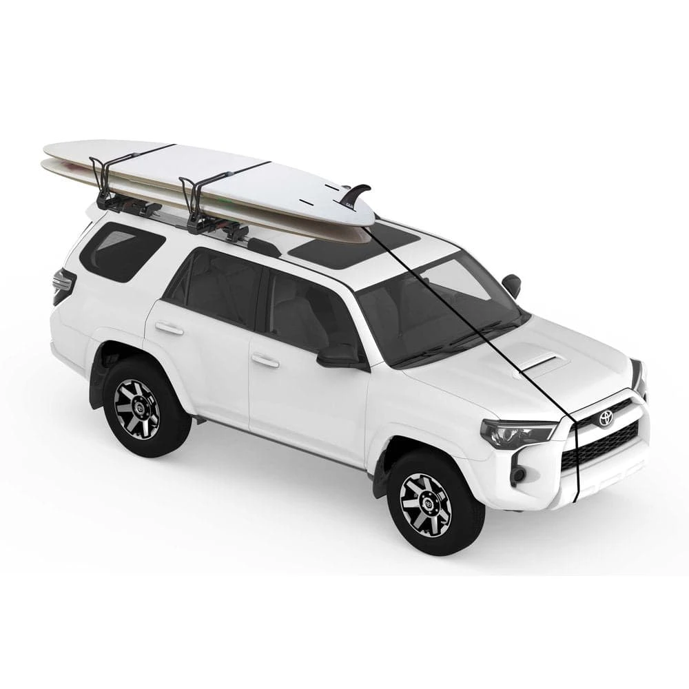 The Yakima ShowDown is the first of its kind, load-assist kayak and SUP mount. The load assist design will take 45% of the boats weight and help you to raise it up onto the vehicle. It securely cradles your kayak or SUP while transporting. The lightweight design is only 21lbs and built to last, supporting up to 80 lbs of cargo.